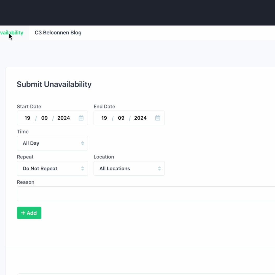 Once you are logged in click the'unavailability' tab located at the top of the page.